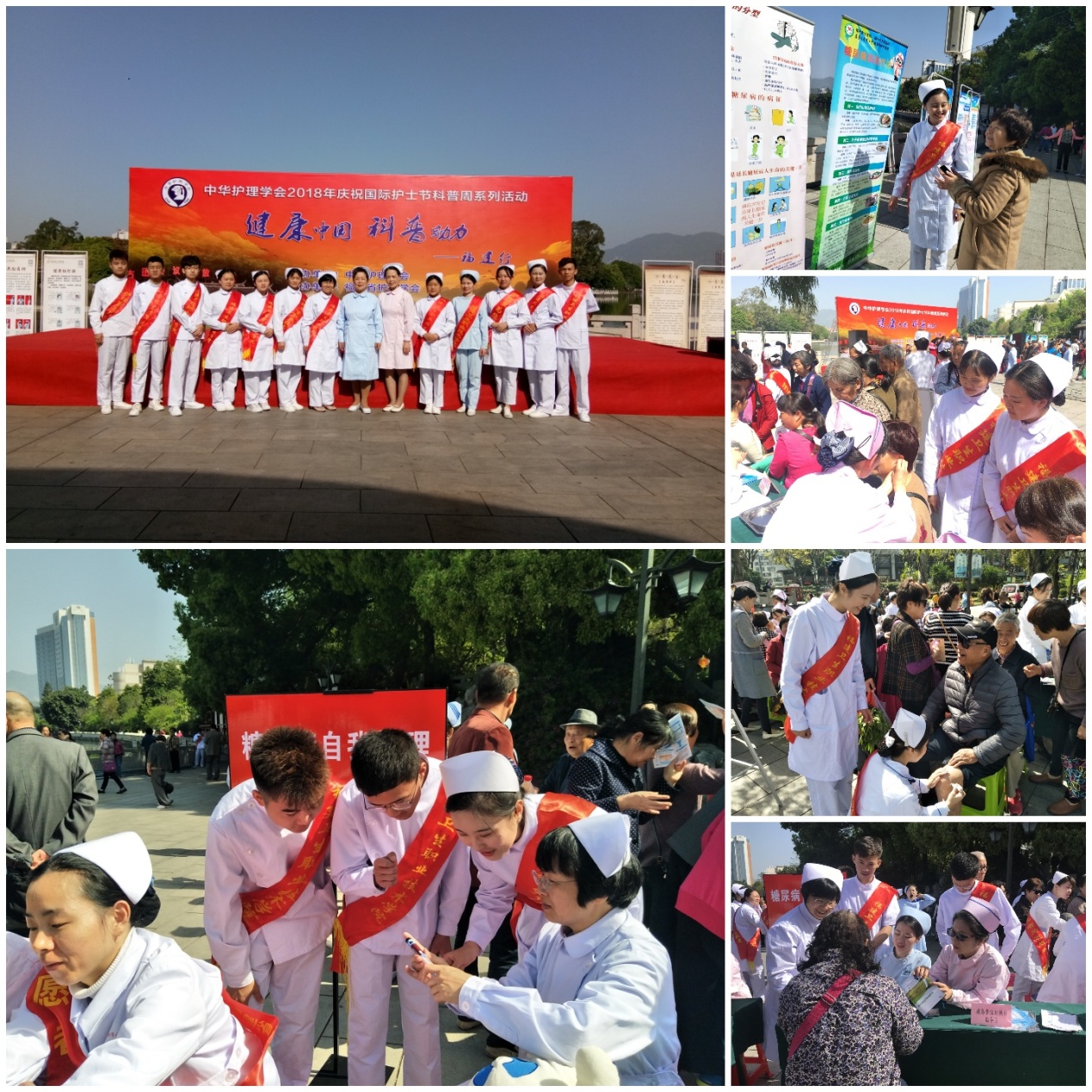 2018年4月8日中華護(hù)理學(xué)會在福州西湖舉辦2018年慶祝國際護(hù)士節(jié)科普周系列活動。福建衛(wèi)生職業(yè)技術(shù)學(xué)院副院長鄭翠紅教授和護(hù)理系黨總支書記謝濤老師帶領(lǐng)護(hù)理系部分師生黨員及入黨積極分子參加本次活動。活動主題為:“健康中國,科學(xué)助力”。