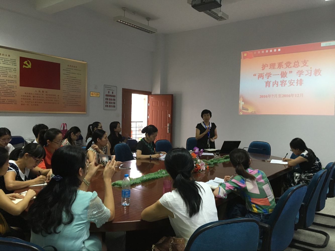 2016年9月13日下午12:30,護理系在301會議室召開“兩學一做”新學期動員部署暨李紅院長講黨課教育活動。