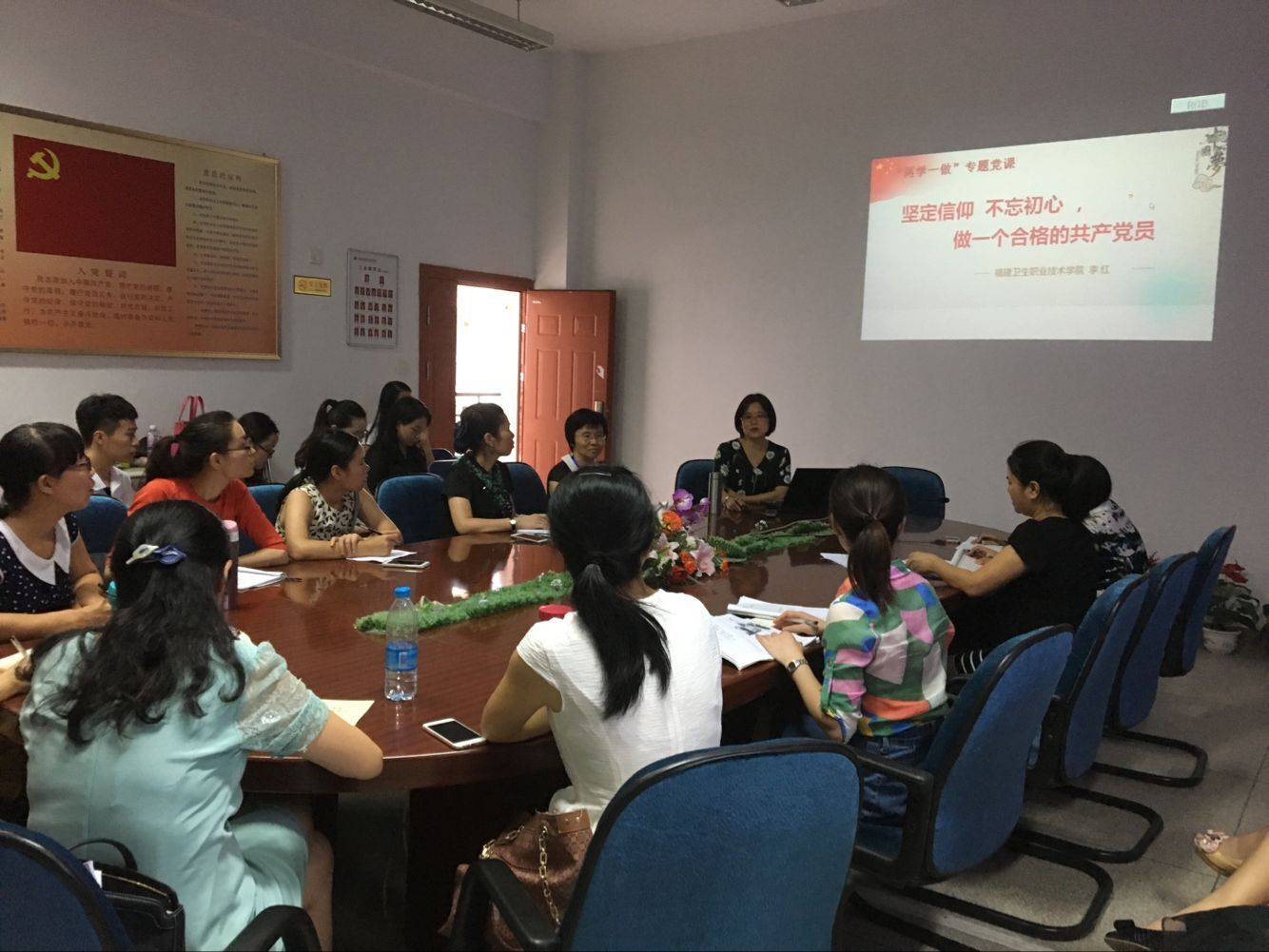 接下來由李紅院長做主題為“堅定信仰,不忘初心,做一個合格的共產黨員”的“兩學一做”專題黨課。李紅院長由《阿甘正傳》引入信仰的含義,認為對信仰的不同理解,體現(xiàn)了一個人生命的寬度和厚度。從個人、民族、國家三個角度闡述對信仰的理解,并重點為大家講解了中國共產黨人的信仰和中國共產黨的歷史貢獻。李紅院長希望我們堅定信仰,不忘初心,不忘自己選擇護理工作的初衷,繼續(xù)為護理工作不懈努力。最后李紅院長從如何做一名合格的共產黨員對大家寄予希望: