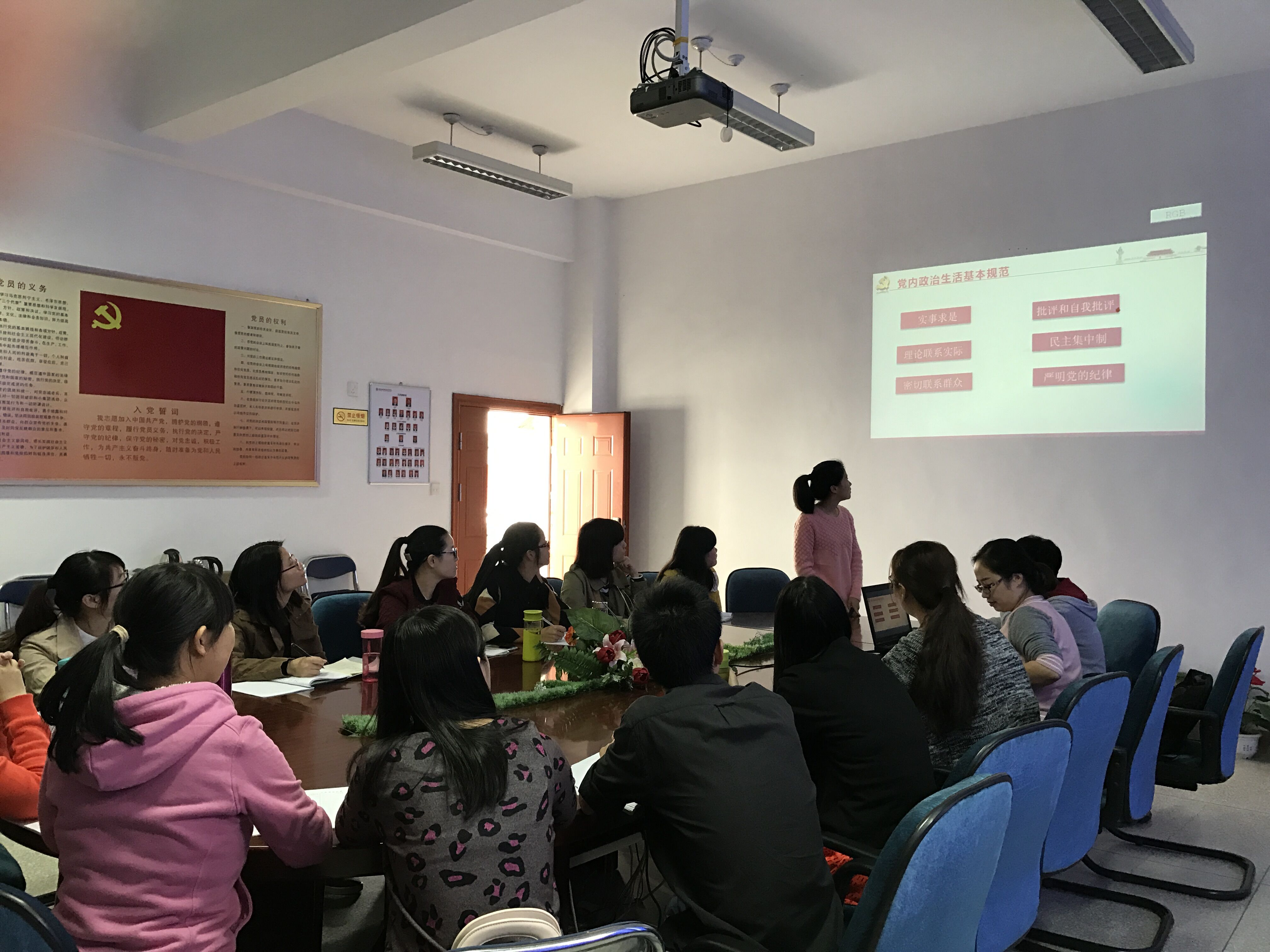 本次會(huì)議支部書記何映紅老師主持,學(xué)習(xí)內(nèi)容主要包括“黨內(nèi)政治生活是傳統(tǒng)”、“制定新形勢下的準(zhǔn)則”、“修訂《黨內(nèi)監(jiān)督條例》”等幾個(gè)方面。十八屆六中全會(huì)是在全面建成小康社會(huì)決勝階段召開的一次十分重要的會(huì)議。其內(nèi)涵豐富、博大精深,要深入學(xué)習(xí)領(lǐng)會(huì)全會(huì)精神,深刻把握全面從嚴(yán)治黨的重大意義,把握新形勢下加強(qiáng)和規(guī)范黨內(nèi)政治生活的基本遵循,把握加強(qiáng)黨內(nèi)監(jiān)督的基本要求,把握領(lǐng)導(dǎo)干部特別是高級(jí)干部是嚴(yán)肅黨內(nèi)政治生活、加強(qiáng)黨內(nèi)監(jiān)督的重點(diǎn)對象,把思想和行動(dòng)統(tǒng)一到全會(huì)精神上來。