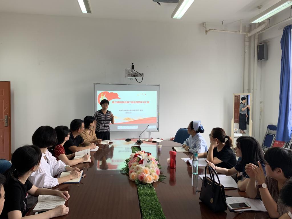 2019年5月13日至5月31日,全省36所高校50位全省黨建工作標(biāo)桿院系培育單位黨委書記(黨總支書記)在福建省委黨校和上海交通大學(xué)組成第26期高校處級干部示范班進(jìn)行學(xué)習(xí)。護理系黨總支謝濤書記參加了此次學(xué)習(xí),為將學(xué)習(xí)精神傳達(dá)給廣大黨員同志,謝濤同志于2019年6月27日在護理系301會議室向護理系黨員同志匯報了學(xué)習(xí)體會。
