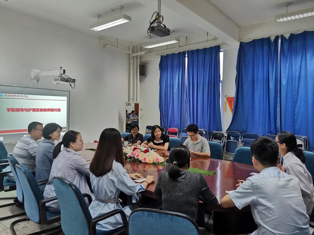 10月16日,院黨委李美華副書記、院團委黃曦書記蒞臨護理系走訪慰問新入職教師,并與我系新入職的林雅珠、翁先鳳、李英、李慶等新教師開展面對面的座談,護理系黨總支謝濤書記、林桂松副書記、王憲寧副主任等參加了座談會。