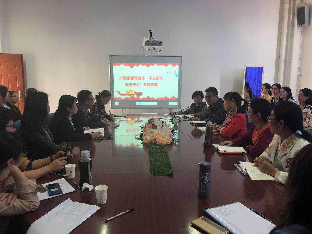 根據(jù)“不忘初心、牢記使命”主題教育統(tǒng)一部署安排,11月12日,護(hù)理系黨政領(lǐng)導(dǎo)班子在護(hù)理系301會議室為護(hù)理系教職工上主題教育專題黨課,護(hù)理系黨總支書記謝濤、副書記兼副主任龔海蓉、副書記林桂松、副主任王憲寧分別緊扣初心使命,在深入學(xué)習(xí)和廣泛調(diào)研的基礎(chǔ)上上專題黨課。會議由系黨總支書記謝濤主持,學(xué)院第三巡回指導(dǎo)小組成員艾松軍和張云霞同志蒞臨指導(dǎo)。