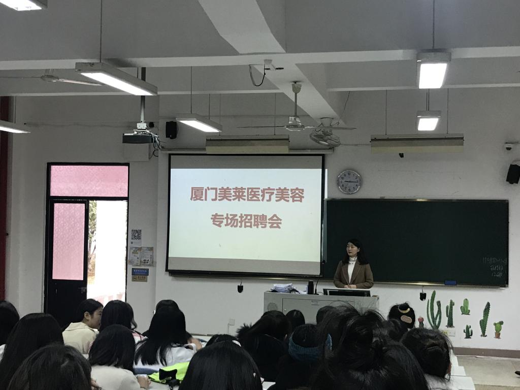 開(kāi)展專(zhuān)場(chǎng)招聘會(huì)的單位有:福州馨尚母嬰護(hù)理服務(wù)股份有限公司、廈門(mén)美萊醫(yī)療美容、廈門(mén)登特口腔醫(yī)院、連江縣閩川醫(yī)院。各專(zhuān)場(chǎng)招聘會(huì)的用人單位分別介紹了本單位的情況、招聘情況、工資待遇情況、職業(yè)前景等,專(zhuān)場(chǎng)招聘會(huì)上學(xué)生與用人單位積極溝通交流、討論,現(xiàn)場(chǎng)氣氛熱烈,求職者們都洋溢著笑容,充滿(mǎn)自信。最后,各專(zhuān)場(chǎng)招聘會(huì)用人單位收集各位學(xué)生的簡(jiǎn)歷,并進(jìn)行面試。