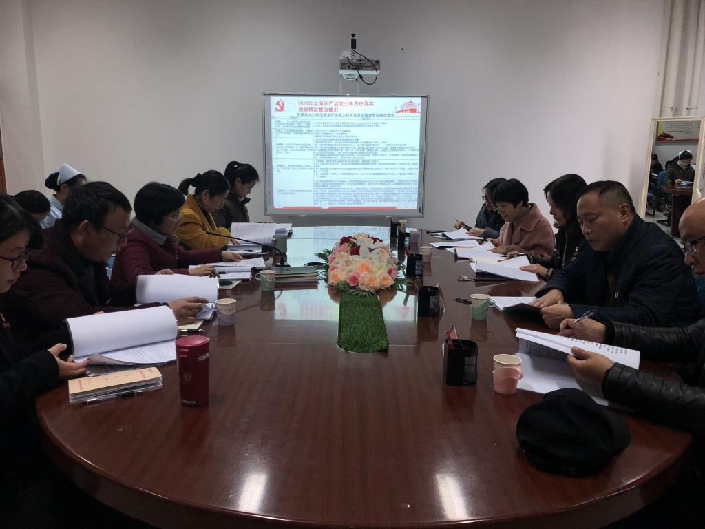 會(huì)上,謝濤書(shū)記從2018年全面從嚴(yán)治黨主體責(zé)任落實(shí)檢查情況整改情況、2019年全面從嚴(yán)治黨主體責(zé)任落實(shí)情況、達(dá)標(biāo)創(chuàng)星建設(shè)情況、對(duì)標(biāo)爭(zhēng)先創(chuàng)建情況、黨建工作重點(diǎn)任務(wù)實(shí)施細(xì)則常態(tài)化項(xiàng)目落實(shí)情況、落實(shí)意識(shí)形態(tài)主體責(zé)任情況、總結(jié)存在不足,強(qiáng)化整改措施等七個(gè)方面進(jìn)行匯報(bào)。