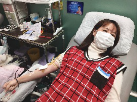 護理系入黨積極分子宋銘鴻表示,贈人玫瑰,手有余香。這是她第一次獻血,雖然出現(xiàn)一點小插曲,體檢時心率過速,一直不正常,但好在平復(fù)了心情后,后續(xù)一切順利。只要健康狀況許可,只要符合無償獻血條件,她都將義無反顧地把無償獻血堅持到底。在挽救生命的同時,踐行自己是一名醫(yī)學(xué)生及一名入黨積極分子的初心和使命。
