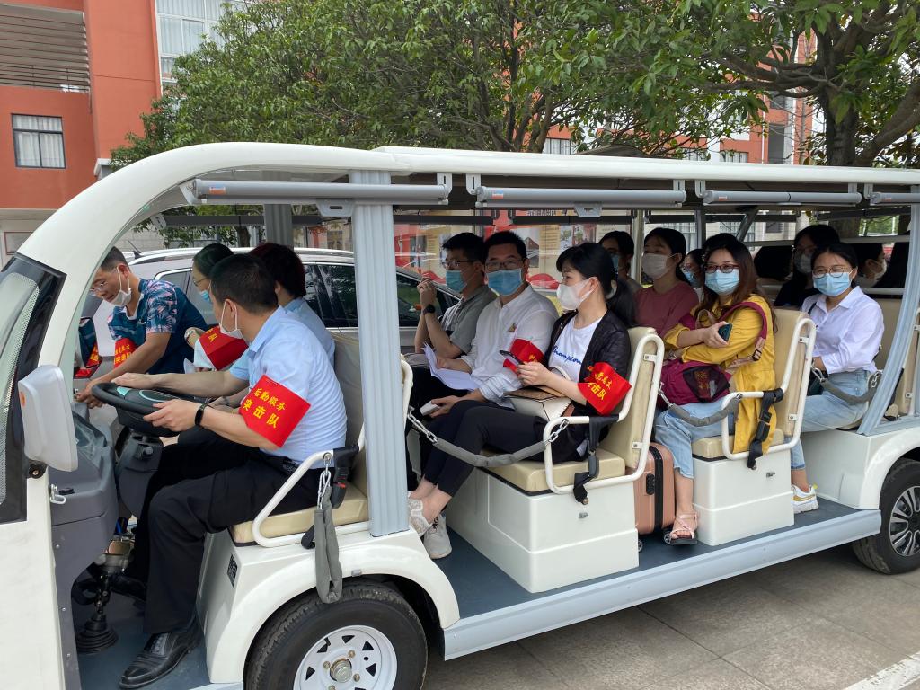 護(hù)理系黨總支黨員突擊隊(duì)隊(duì)長謝濤為接送學(xué)生車輛粘貼車標(biāo)