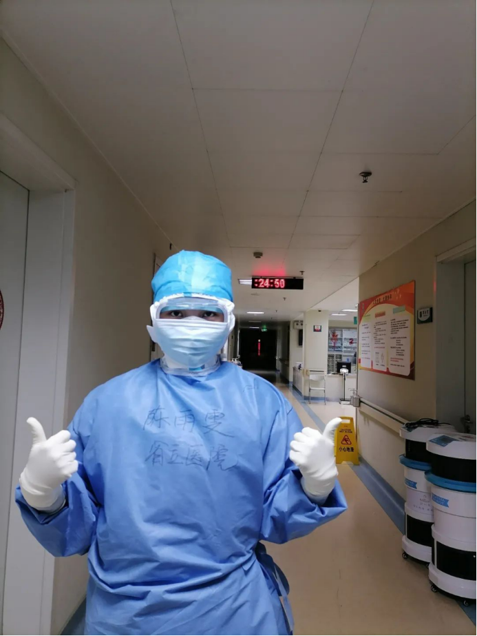 考慮到自己組上還有18個病人,陳雨雯硬是撐到了下班。到了清潔區(qū),脫下口罩,那一刻她大口大口地呼吸,有一種重獲新生的感覺。