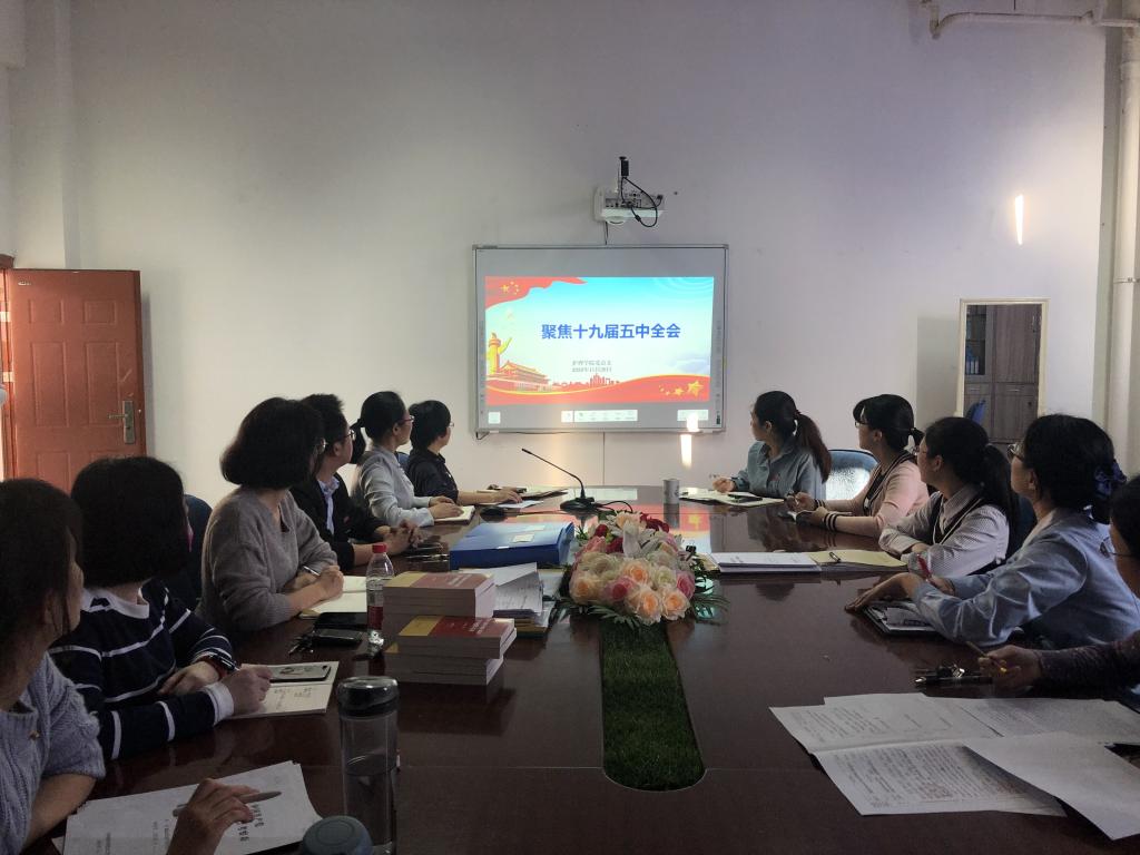 11月26日,護(hù)理學(xué)院黨總支中心組(擴(kuò)大)組織黨的十九屆五中全會(huì)精神,會(huì)議由護(hù)理學(xué)院黨總支書記謝濤主持,護(hù)理學(xué)院黨務(wù)干部參加此次會(huì)議。