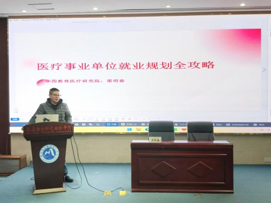 為深入貫徹黨的二十屆三中全會和全國教育大會精神,貫徹落實黨中央、國務(wù)院對高校畢業(yè)生就業(yè)創(chuàng)業(yè)工作的決策部署,幫助學生提升職業(yè)素養(yǎng)和就業(yè)競爭力,護理學院學生第一黨支部于12月30日晚在實訓樓報告廳開展就業(yè)指導黨日活動。本次活動特邀華圖教育醫(yī)療研究院梁明春老師作《醫(yī)療事業(yè)單位就業(yè)規(guī)劃全攻略》專題輔導。護理學院2025屆畢業(yè)生線上參加此次活動。