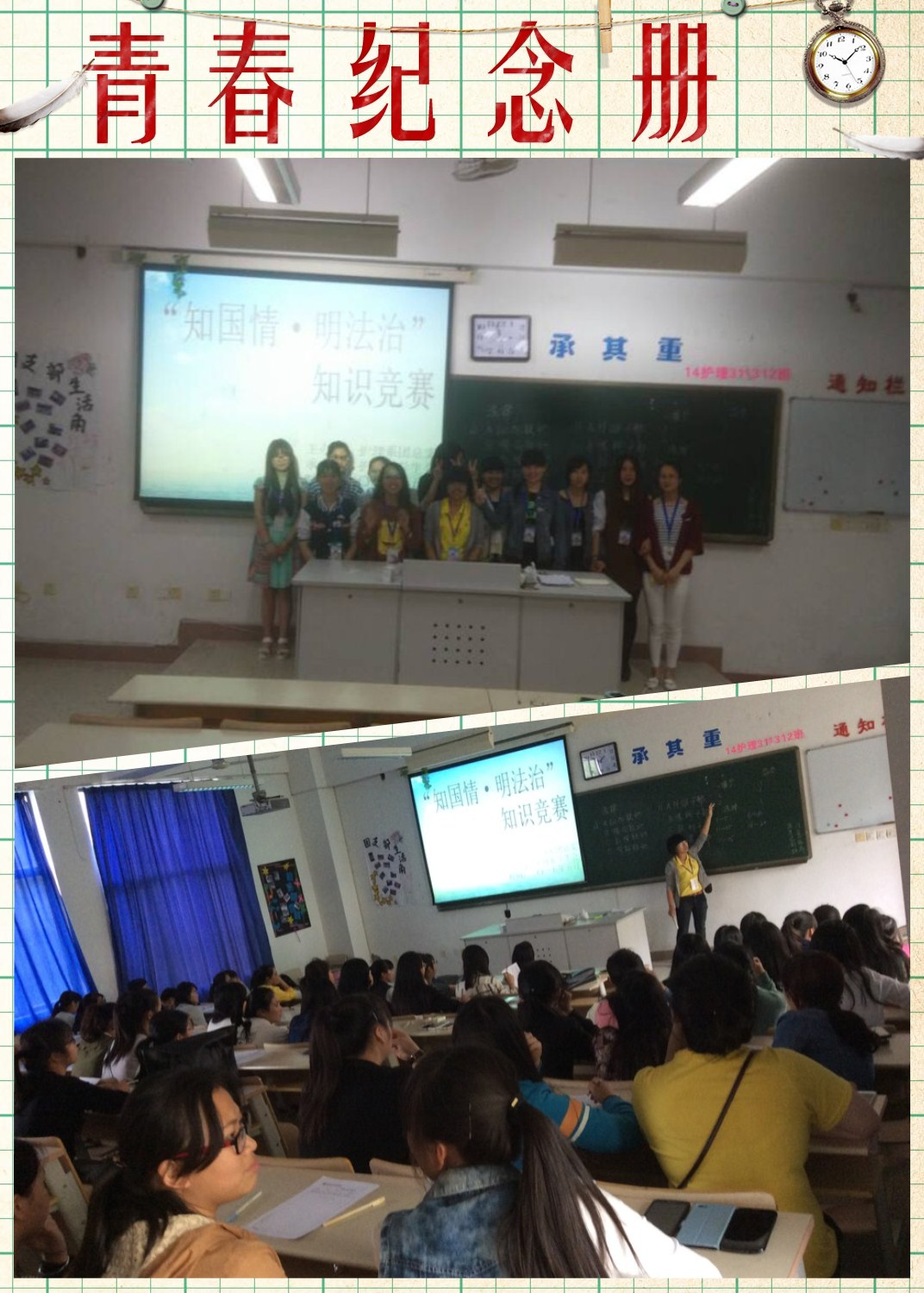 2015年5月5日14:00,由護(hù)理系學(xué)習(xí)部主辦的“知國情·明法治”知識競賽在教學(xué)樓211舉行。本次活動面向護(hù)理系全體學(xué)生。出席本次活動的評委有學(xué)生會主席和各部門正副部長。 活動前期,通過QQ群和微博等網(wǎng)絡(luò)平臺宣傳,引起同學(xué)們的關(guān)注。部門內(nèi)部積極召開學(xué)委會議,通知學(xué)委傳達(dá)競賽的相關(guān)信息,做好各班的宣傳工作,讓同學(xué)們踴躍地參與到活動中。此次競賽,部門嚴(yán)格遵循競賽準(zhǔn)則的規(guī)章制度,賽前的準(zhǔn)備工作,賽時的“公平、公正”,賽場的秩序,賽后的清理與整理工作等。都為本次活動順利進(jìn)行提供了保障。 2015年是全面推進(jìn)依法治國的開局之年。本次活動,以“兩會”為背景,結(jié)合校史,讓同學(xué)們在了解關(guān)注時事的基礎(chǔ)上,通過競賽的方式,進(jìn)一步學(xué)習(xí)“兩會”的精神與意義,認(rèn)識到堅決擁護(hù)黨中央與國家所做出的科學(xué)決策的重要性,同時進(jìn)一步深入了解學(xué)院濃厚的文化歷史底蘊(yùn)。同學(xué)們在活動中展現(xiàn)出當(dāng)代大學(xué)生積極進(jìn)取,蓬勃朝氣的精神風(fēng)貌,希望同學(xué)們通過在本次活動將學(xué)習(xí)到的精神帶到日常生活中。做到在日常生活中自覺踐行法治精神,自覺遵循學(xué)生應(yīng)盡的職責(zé)與義務(wù),積極帶動身邊的同學(xué)們參與到法治精神的學(xué)習(xí)、討論與實(shí)踐中去,促進(jìn)校園文明與和諧,推動學(xué)院的“法治”建設(shè)進(jìn)程。