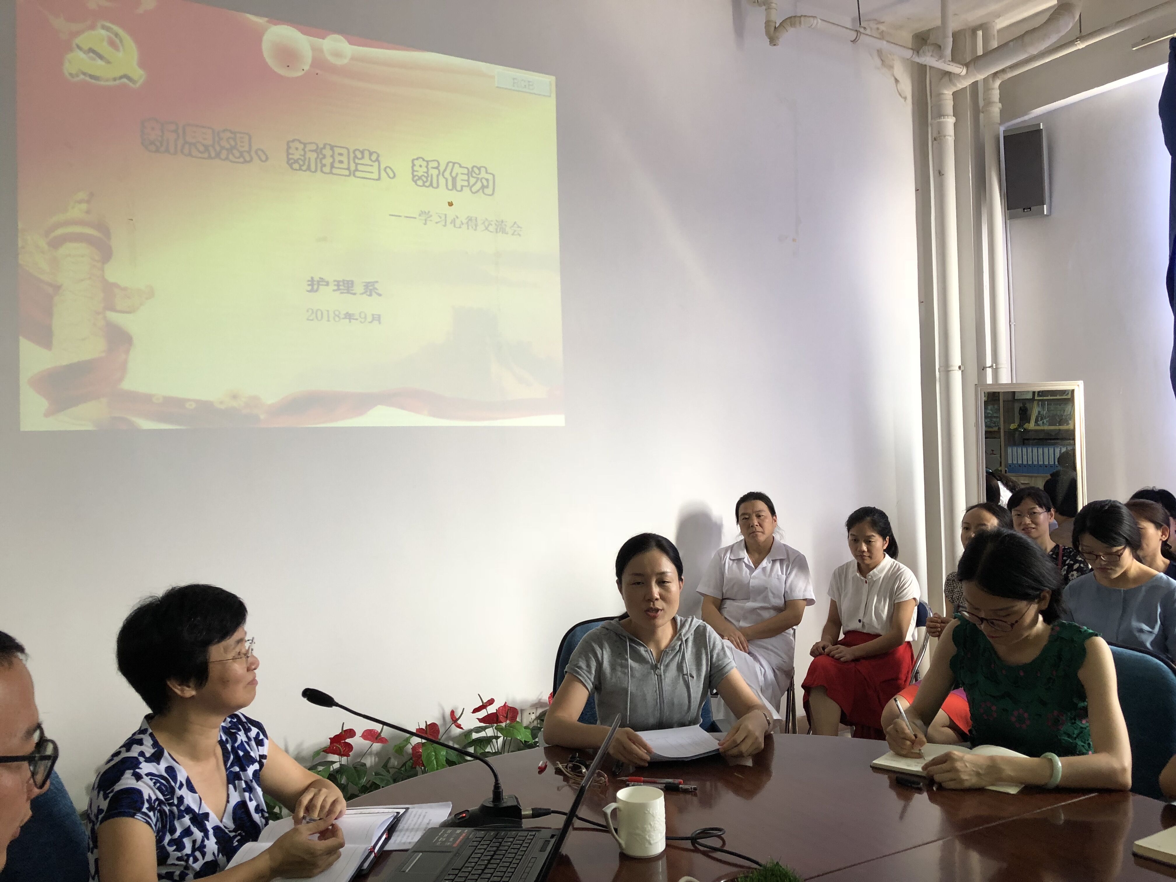 為進(jìn)一步學(xué)懂弄通做實(shí)習(xí)近平新時(shí)代中國(guó)特色社會(huì)主義思想,掀起新思想“大學(xué)習(xí)、大宣講、大調(diào)研”熱潮,我系于9月6日下午在護(hù)理系會(huì)議室召開主題為“新思想、新?lián)?dāng)、新作為”的學(xué)習(xí)心得交流會(huì),會(huì)議由護(hù)理系黨總支書記謝濤同志主持。