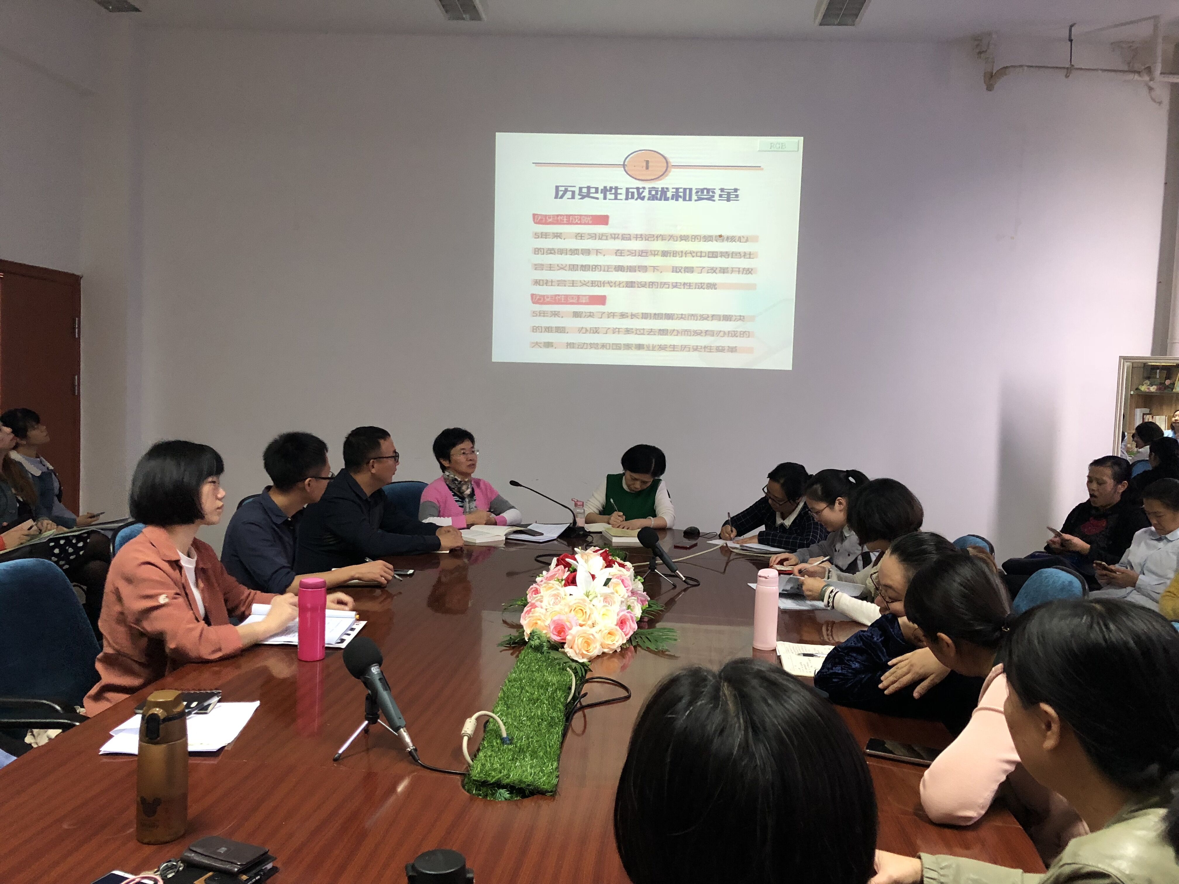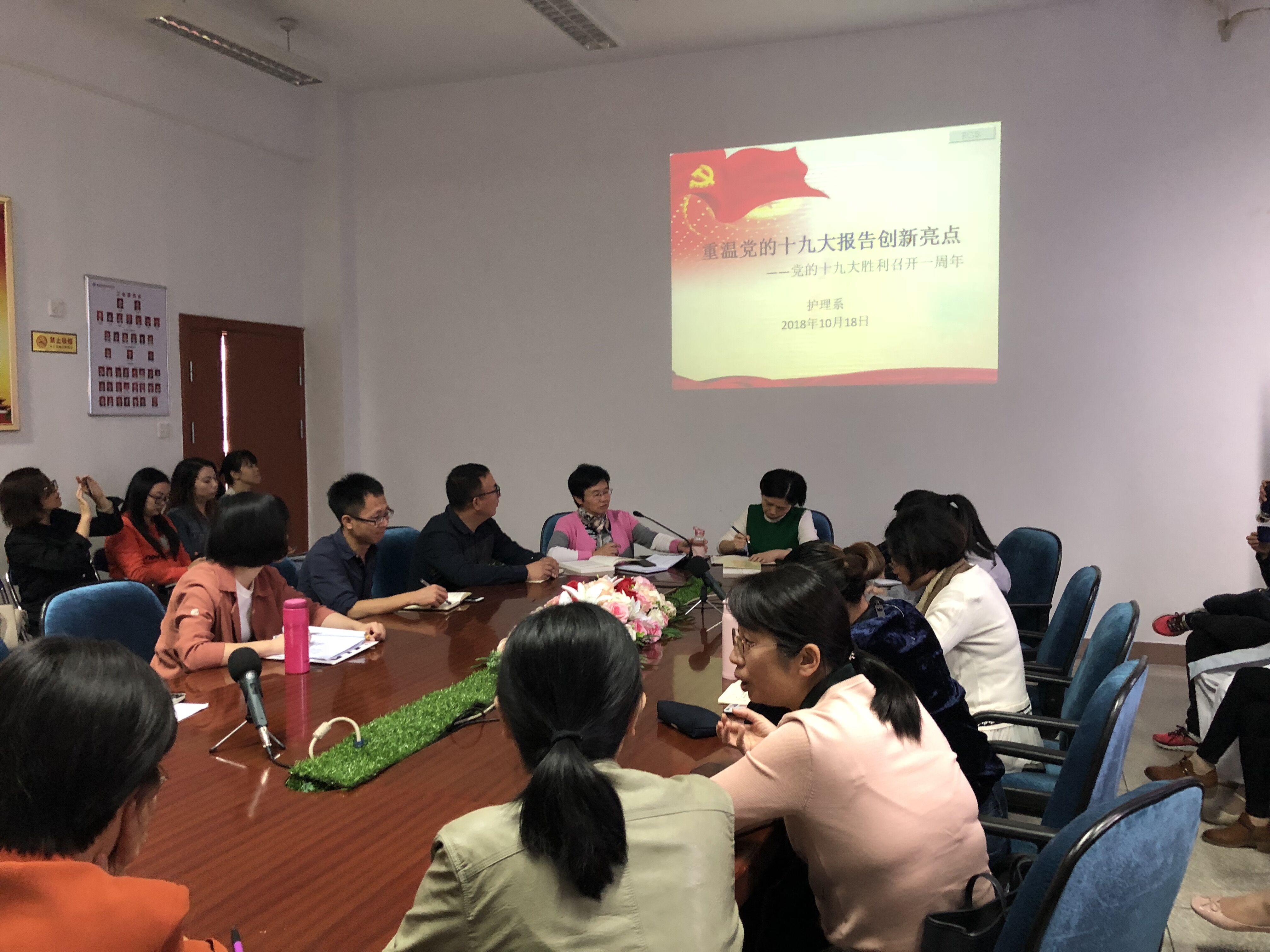 黨的十九大報告是習近平新時代中國特色社會主義思想的集大成,實現(xiàn)了黨的指導思想的與時俱進,處處閃耀著創(chuàng)新和發(fā)展馬克思主義的真理光芒。為紀念黨的十九大勝利召開一周年,立足于一周年的時間節(jié)點,護理系于301會議室進行了題為“重溫黨的十九大報告創(chuàng)新亮點——黨的十九大勝利召開一周年”的專題黨課學習。此次專題黨課有護理系謝濤書記主持并講授,護理系全體教職工參與學習。