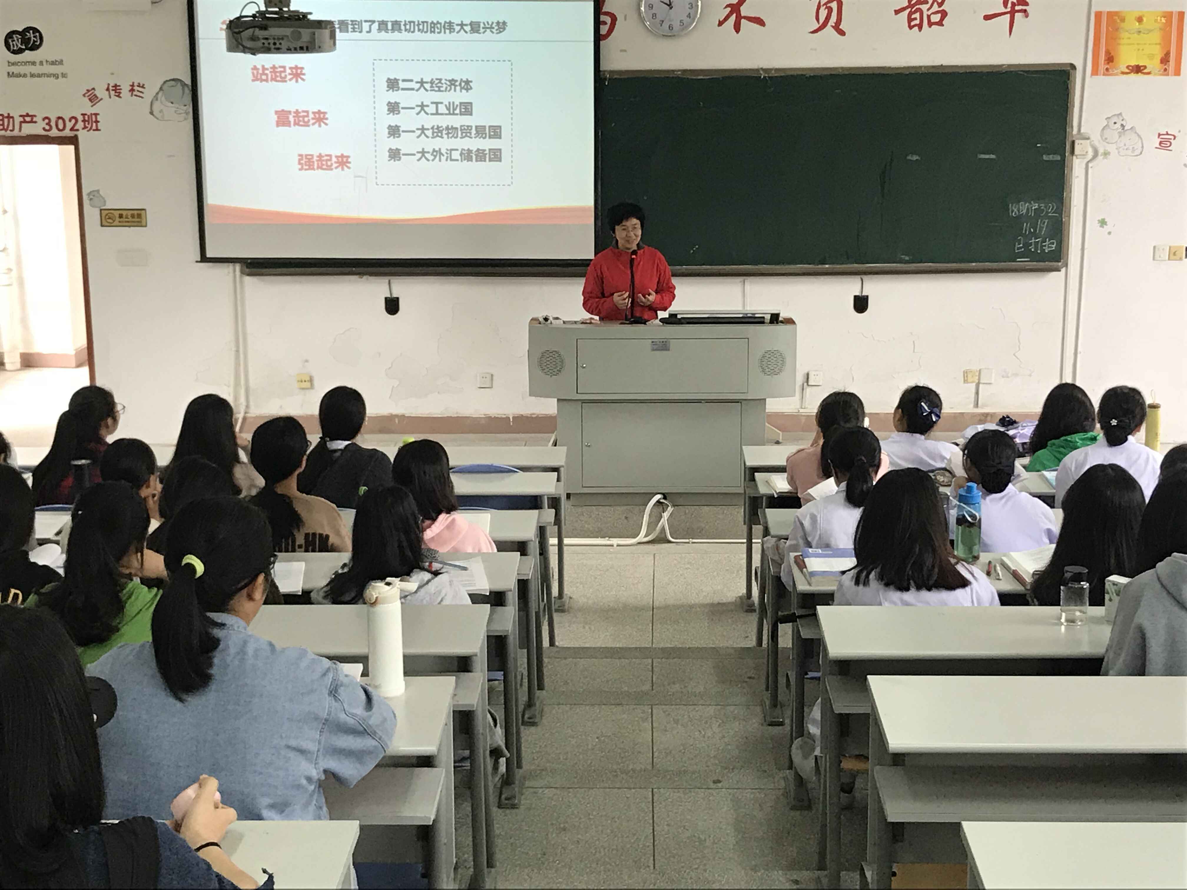謝濤書(shū)記圍繞改革開(kāi)放40周年,從“改革開(kāi)放40年的輝煌成就”、“正確看待我國(guó)的綜合國(guó)力”、以及“勇?lián)率姑V寫(xiě)新篇章”三個(gè)方面進(jìn)行講解。首先,她從人民的獲得感、民族的復(fù)興夢(mèng)以及人類(lèi)的進(jìn)步路三個(gè)方面,歷數(shù)了改革開(kāi)放40年來(lái)的輝煌成就;其次,從經(jīng)濟(jì)的高速發(fā)展、科學(xué)技術(shù)的進(jìn)步以及核心制造領(lǐng)域的缺失,引導(dǎo)同學(xué)們正確看待我們的綜合國(guó)力;最后,她指出,同學(xué)們是同新時(shí)代共同前進(jìn)的一代,既生逢其時(shí),也重任在肩。她呼吁同學(xué)們要立志成為擔(dān)當(dāng)民族復(fù)興大任的時(shí)代新人。