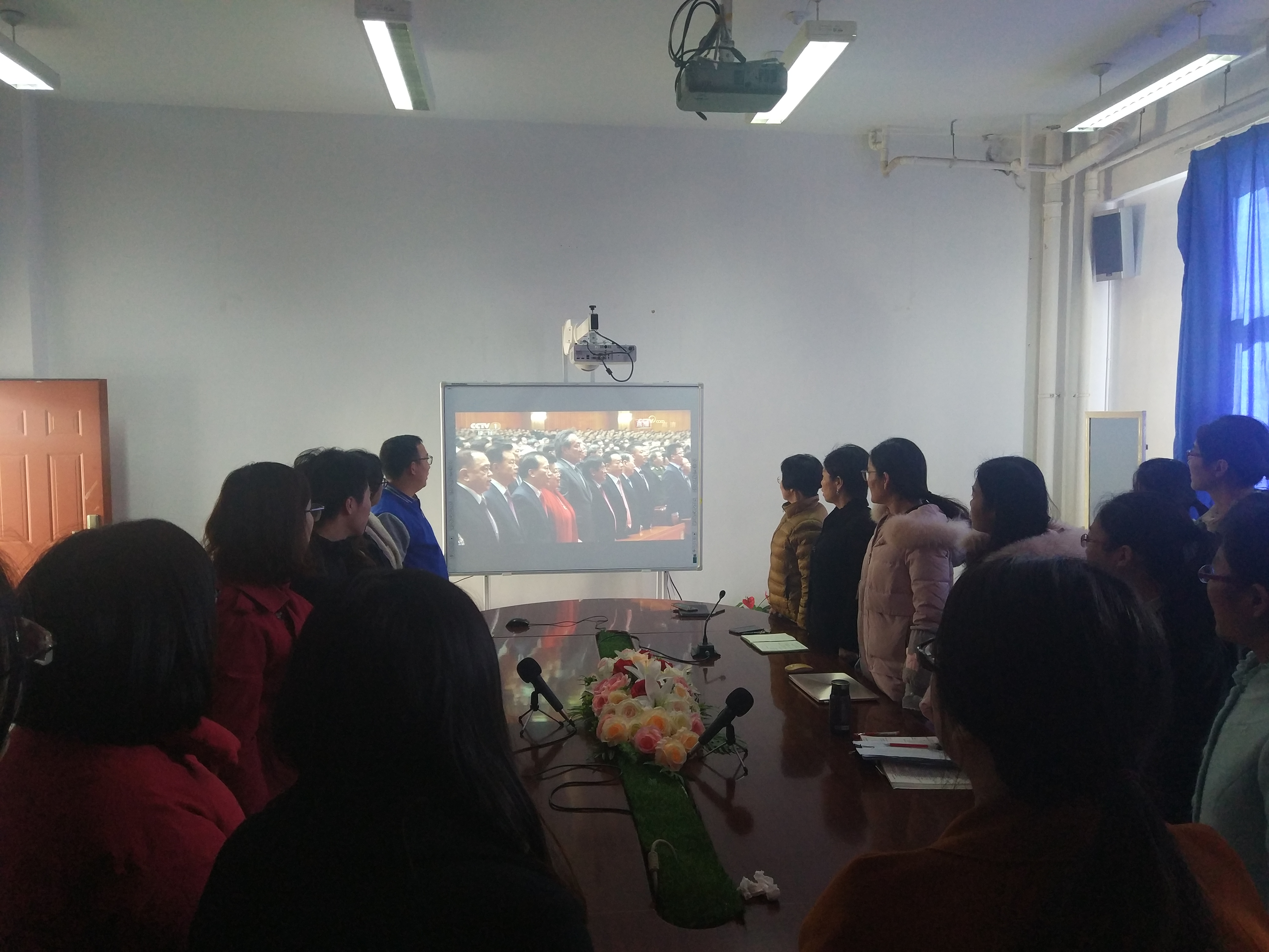 護(hù)理黨總支組織全系無教學(xué)任務(wù)的教師集中看大會直播(齊唱國歌)