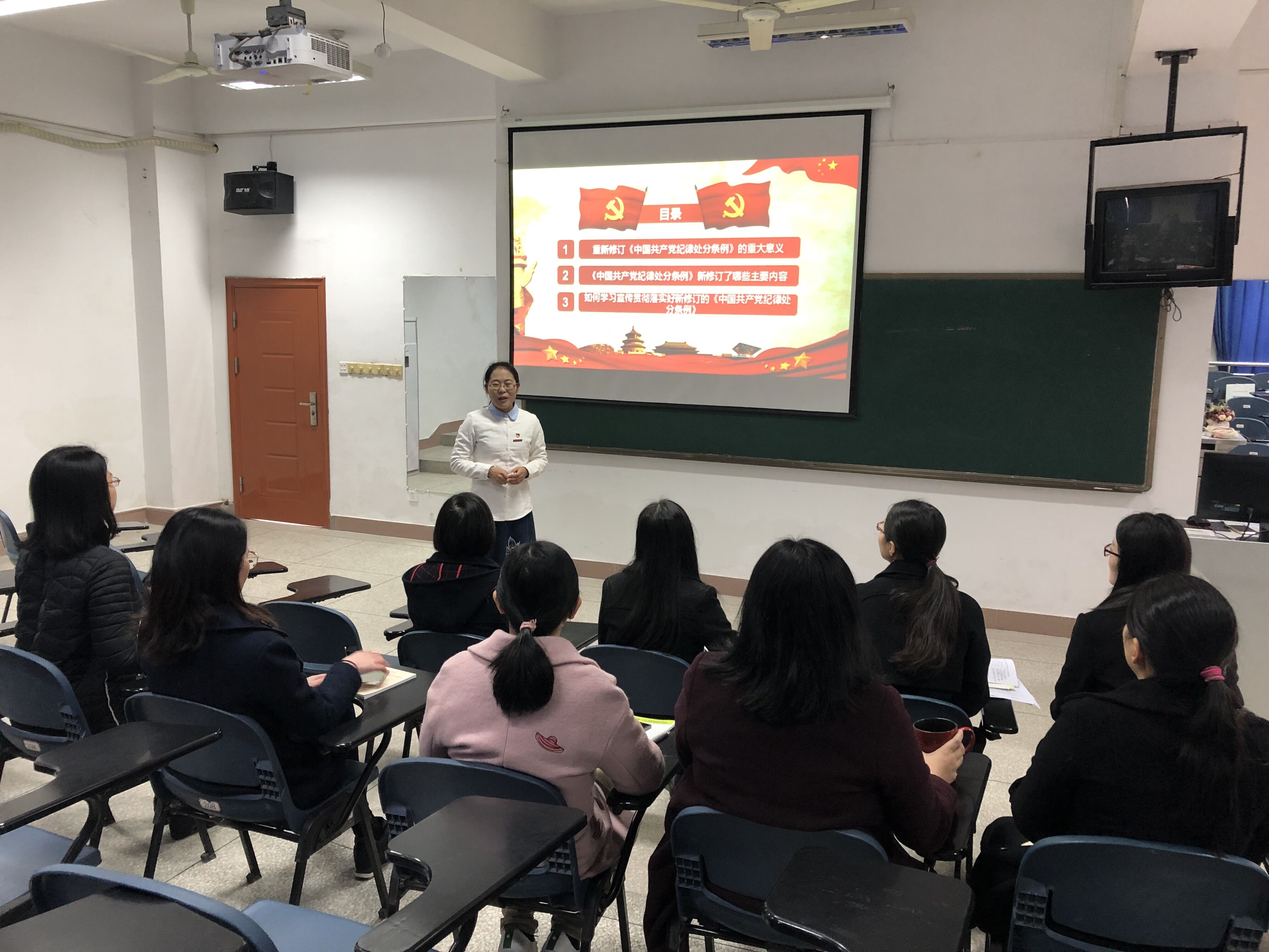 護理系第一黨支部于2019年1月18日召開支部黨員大會,組織全體黨員集中學(xué)習(xí)《中國共產(chǎn)黨紀(jì)律處分條例》(以下簡稱《條例》)。