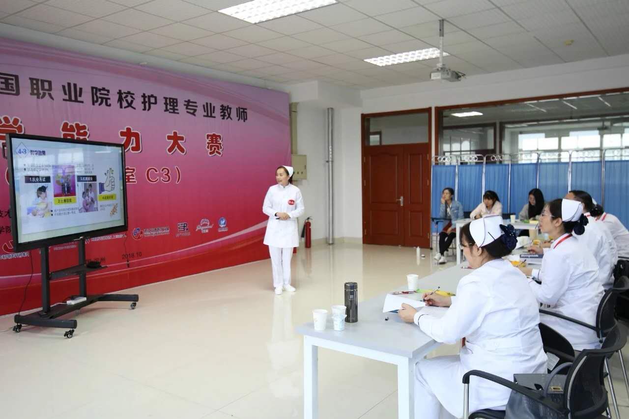 本次大賽由全國(guó)29個(gè)省、124所院校、240名教師參賽,共分為三部分,分別是理論考核、說(shuō)課程和臨床護(hù)理技能考核,通過(guò)引入標(biāo)準(zhǔn)化病人,全方位考察參賽教師的職業(yè)教育教學(xué)能力、知識(shí)應(yīng)用能力、技能操作執(zhí)行能力、溝通能力、分析與解決問(wèn)題的能力及人文素養(yǎng)等。
