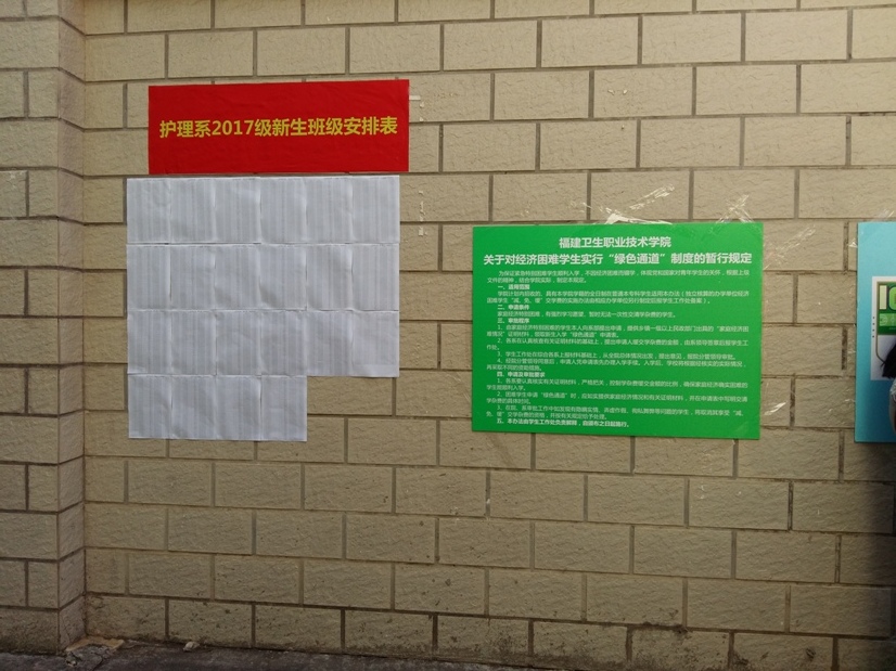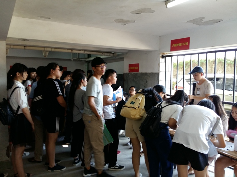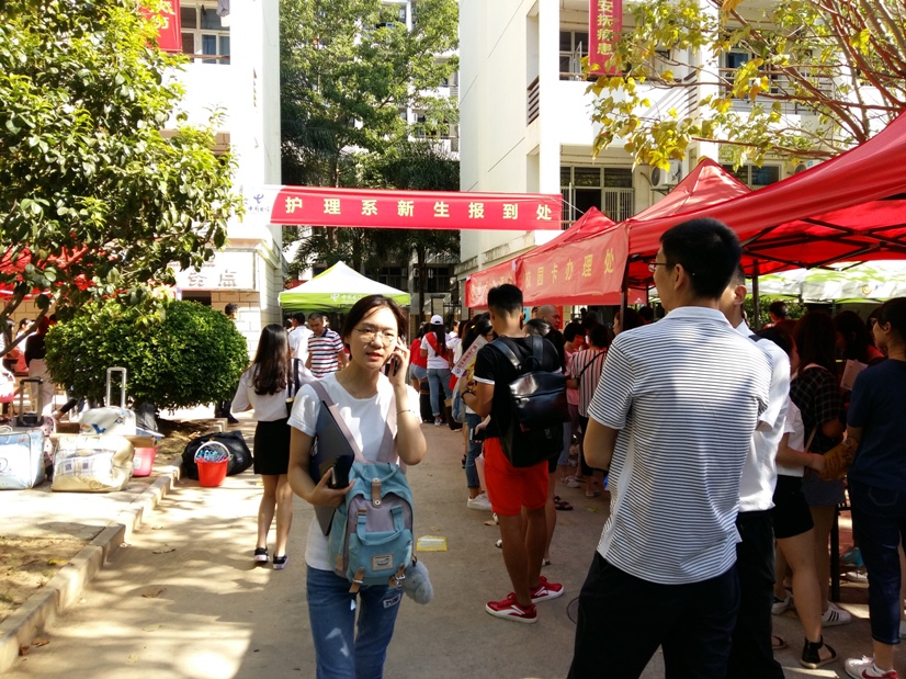 報到當天,結(jié)合護理系的實際情況,將報到處設置在3號和5號學生公寓樓下,同時,在過道外墻和各班報到辦公桌上均張貼排班名單、報到流程圖、學費說明等。在現(xiàn)場,系部領導老師耐心回答新生和家長的各種咨詢,介紹護理系辦學特色和相關專業(yè)的基本情況,并及時為困難學生開設“綠色通道”服務;志愿者們帶著新生完成入學的各項手續(xù)。護理系熱情的志愿者,慈祥的老師以及一切人性化的服務,令遠道而來的學生和隨行的家長感到由衷的滿意。使新生及家長第一時間感受到學校的溫暖,為新生和家長留下美好的印象。