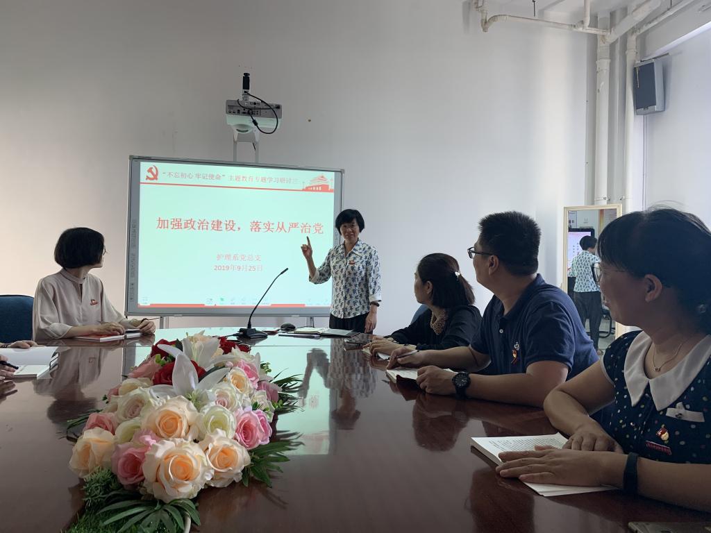 9月25日,護(hù)理系黨總支在系部會(huì)議室開展主題為“加強(qiáng)政治建設(shè),落實(shí)全面從嚴(yán)治黨”專題學(xué)習(xí)研討交流會(huì)。學(xué)院巡回指導(dǎo)三小組成員管理系黨總支書記艾松軍同志、組織員張?jiān)葡纪境鱿?,護(hù)理系黨總支書記謝濤同志主持會(huì)議,并與護(hù)理系辦公室主任陳盛蘭、專職組織員許慧瓊作主要交流發(fā)言。護(hù)理系全體黨員參加了本次研討交流。