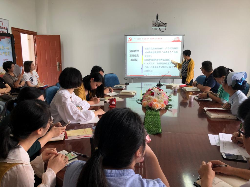 謝濤同志圍繞護(hù)理系調(diào)研過程中發(fā)現(xiàn)的問題,講授本次黨課。課上,謝濤同志從調(diào)研發(fā)現(xiàn)的問題 、原因分析及整改措施及如何加強(qiáng)護(hù)理系黨總支的建設(shè)三方面講述本次黨課。