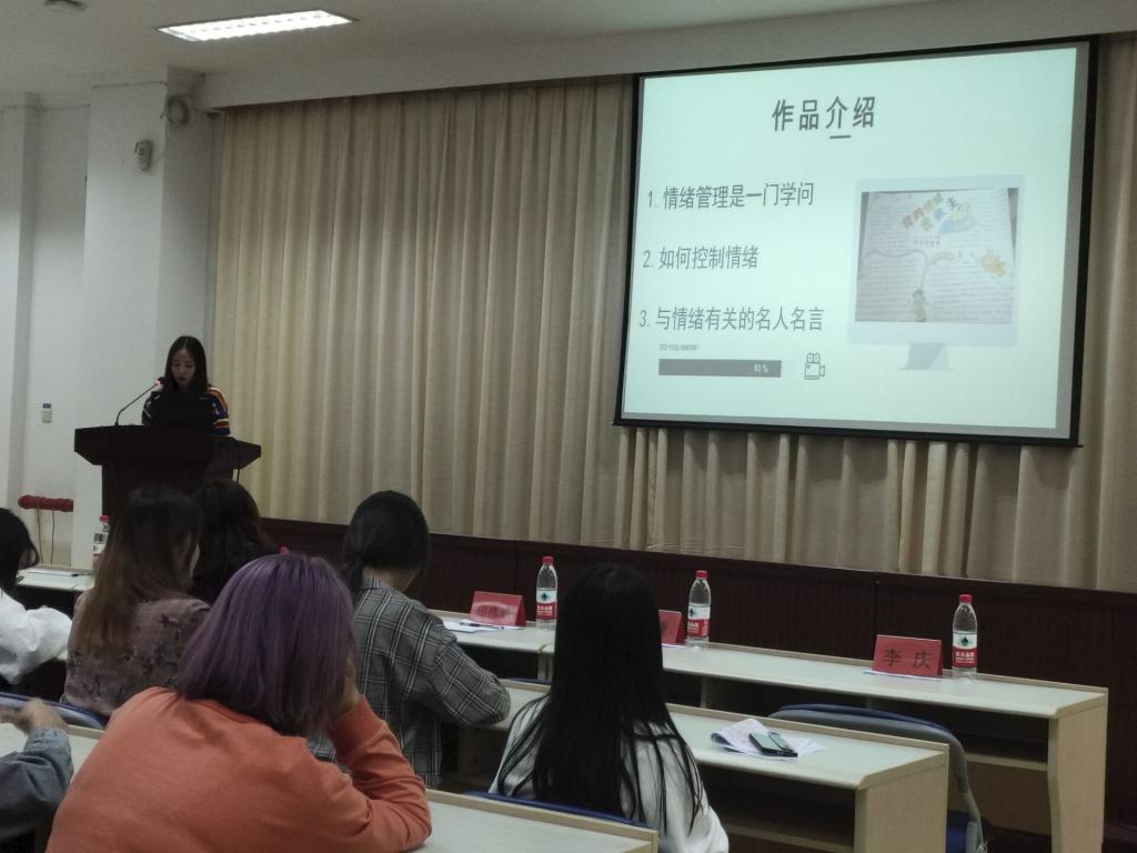 決賽于2019年10月20日在行政樓六樓會議室進行。參與此次活動的有院心理健康教育中心副主任田偉翠老師、護理系心理輔導站鄭梅欽老師、護理系團總支副書記張龍、林飛準老師、護理系輔導員李曉佳等老師,以及全體心理委員和部分同學?;顒又羞x手們主要借用PPT分享自己優(yōu)秀的手抄報作品、創(chuàng)作思路與內(nèi)心感悟。在體驗兩個小時的“情緒調(diào)控術(shù)”盛宴后,評委老師們根據(jù)選手們的綜合表現(xiàn)得出:謝琳潔獲得一等獎,徐琳馨等3人獲得二等獎,付詩藝、陳虹等4人獲得三等獎,呂金蓮、江舒敏,郭凌湘等人獲得優(yōu)秀獎。