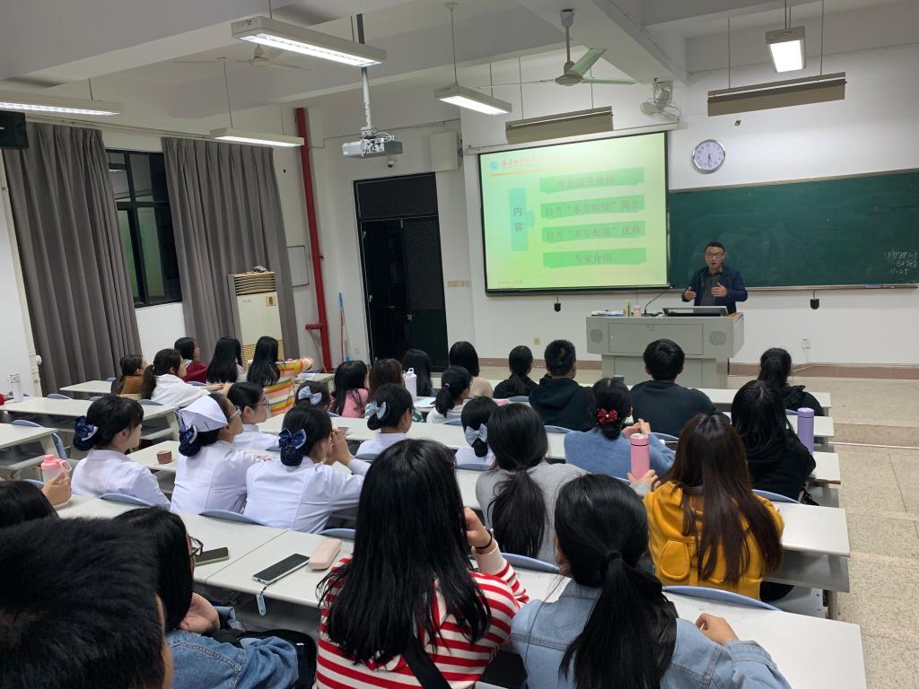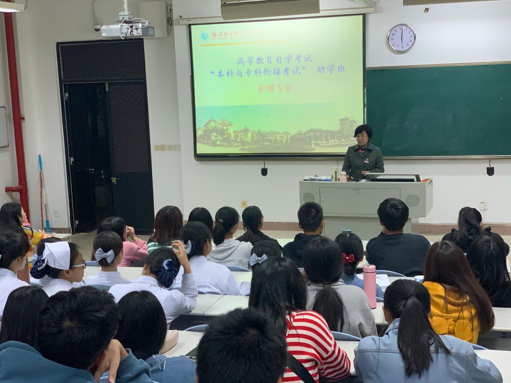 為幫助護(hù)理系學(xué)生深入了解“??婆c本科銜接考試”政策,科學(xué)、合理、有效地規(guī)劃學(xué)習(xí),引導(dǎo)同學(xué)們樹立學(xué)歷提升的自信心,福建衛(wèi)生職業(yè)技術(shù)學(xué)院護(hù)理系于11月27日在教學(xué)樓110舉辦了高等教育自學(xué)考試“??婆c本科銜接考試”護(hù)理專業(yè)專題講座。本次講座特邀護(hù)理系黨總支書記謝濤、副書記林桂松主講。