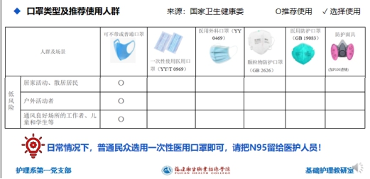 習近平總書記2020年2月23日在統(tǒng)籌推進新冠肺炎疫情防控和經濟社會發(fā)展工作部署會議上的講話時指出,當前疫情形勢依然嚴峻復雜,防控正處在最吃勁的關鍵階段。這個時候,必須高度警惕麻痹思想、厭戰(zhàn)情緒、僥幸心理、松勁心態(tài),否則將帶來嚴重后果,甚至前功盡棄。要堅定必勝信念,咬緊牙關,繼續(xù)毫不放松抓緊抓實抓細各項防控工作,不獲全勝決不輕言成功。護理系黨總支疫情防控黨員突擊隊的黨員教師發(fā)揮黨員先鋒模范作用,在原有的專業(yè)知識基礎上,護理系黨總支疫情防控黨員突擊隊的黨員教師及時學習更新疫情防控知識,制作了針對疫情防控的專業(yè)知識解讀視頻,讓學生在學習疫情防控知識的同時,也能更全面的掌握護理專業(yè)知識原理。