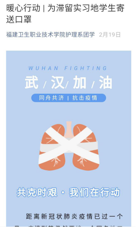 在這次抗擊疫情過(guò)程中,社會(huì)各界積極履行社會(huì)責(zé)任,為抗擊新型冠狀病毒疫情貢獻(xiàn)著力量。我校不僅有近百名優(yōu)秀校友奔赴武漢防疫一線發(fā)揚(yáng)了護(hù)理工作者的南丁格爾提燈精神,我系兩位教師家屬也奔赴武漢防疫一線彰顯了醫(yī)者的使命與擔(dān)當(dāng)。