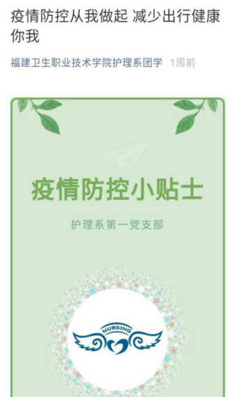在努力做好教學(xué)工作的同時(shí),各個(gè)專業(yè)的教師發(fā)揮集體智慧,團(tuán)結(jié)一心,共渡難關(guān),實(shí)現(xiàn)防疫、教學(xué)兩不誤。護(hù)理系黨員教師結(jié)合專業(yè)方向,制作微黨課視頻和疫情防控的專業(yè)知識(shí)解讀視頻,開(kāi)展黨的知識(shí)及疫情防控知識(shí)的宣教。