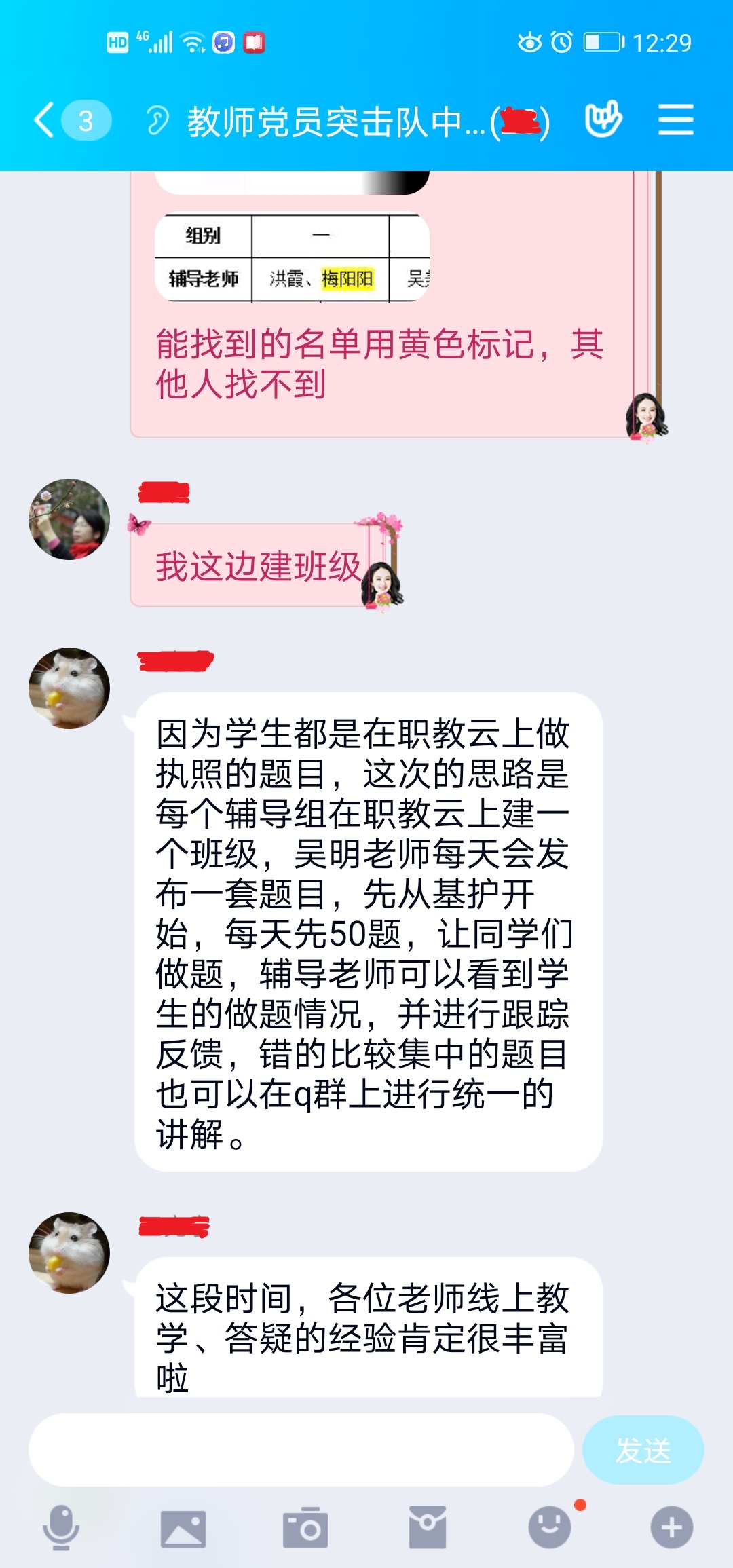 此情此景,護(hù)理系黨員干部看在眼里、急在心里,迅速因事而化、因時(shí)而進(jìn)、因勢(shì)而新,成立了以謝濤書(shū)記為組長(zhǎng)、護(hù)理系黨員突擊隊(duì)為中堅(jiān)的在線(xiàn)輔導(dǎo)員小組,并于4月8日召開(kāi)線(xiàn)上黨日活動(dòng),集體分析研究精準(zhǔn)扶貧班的班情、學(xué)情,共同制定精準(zhǔn)扶貧班護(hù)士資格考試“一對(duì)一”在線(xiàn)輔導(dǎo)方案,對(duì)“一對(duì)一”在線(xiàn)輔導(dǎo)進(jìn)行分工并責(zé)任落實(shí)到人等,推進(jìn)精準(zhǔn)扶貧班備戰(zhàn)202年護(hù)士資格考試。