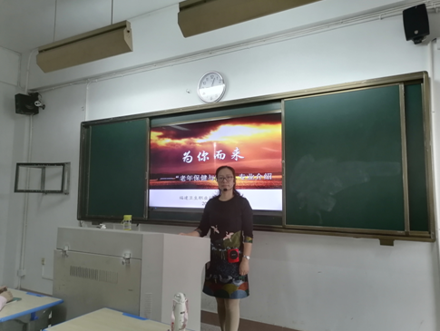 為了加深一年級新生對自己所學(xué)專業(yè)和未來就業(yè)崗位的了解,護理系于2020年10月12日上午在教學(xué)樓201教室召開了老年保健與管理專業(yè)介紹會。介紹會由老年保健與管理專業(yè)帶頭人李淼淼副教授主講,20級老年保健與管理301班全體學(xué)生、該班輔導(dǎo)員及相關(guān)專業(yè)教師參加了會議。
