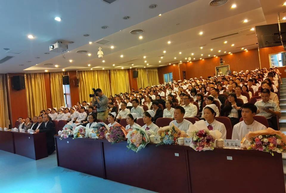 學(xué)生代表還為報(bào)告團(tuán)嘉賓送上鮮花和護(hù)士裝扮卡通熊表示敬意。