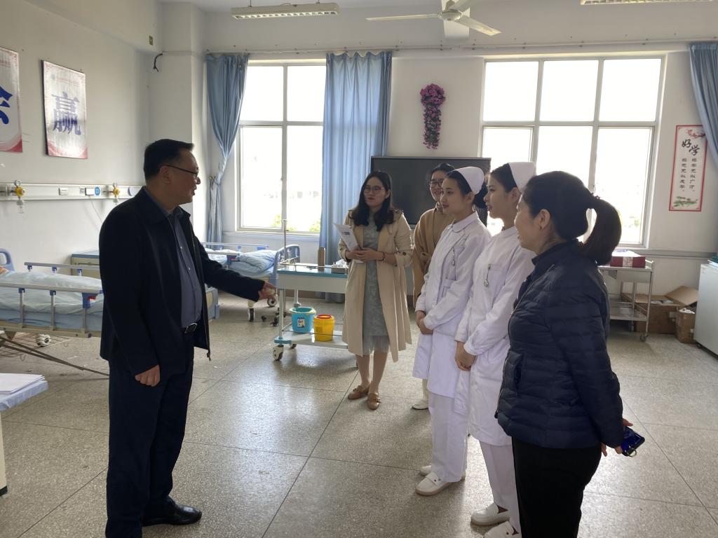 校黨委書記曾武祈、護理學(xué)院黨總支書記謝濤、護理學(xué)院院長龔海蓉、副院長王憲寧等一行來到備賽實訓(xùn)場地,指導(dǎo)教師就選手的訓(xùn)練內(nèi)容、訓(xùn)練進度、身體和心理狀態(tài)等作了介紹。