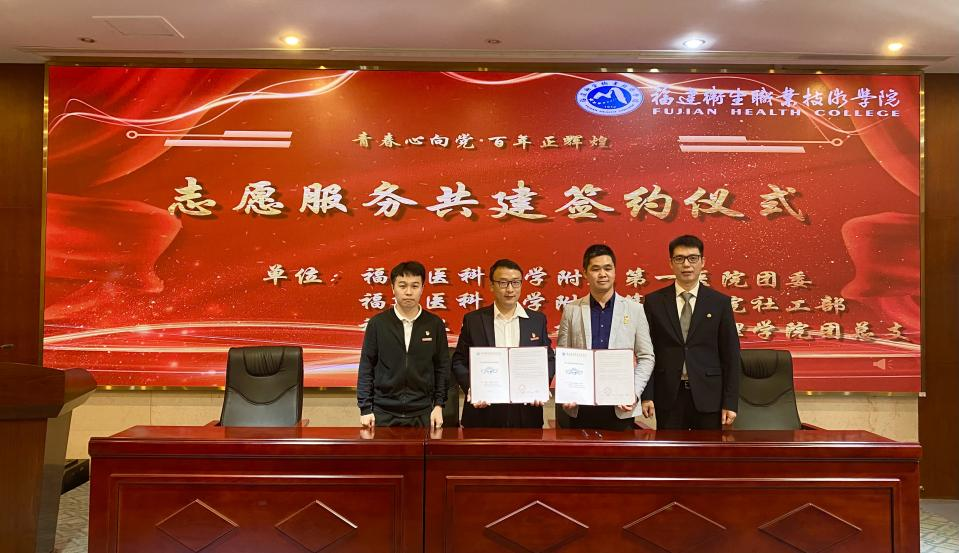 為弘揚志愿服務(wù)精神,搭建“資源共享、優(yōu)勢互補、協(xié)調(diào)發(fā)展”的共建平臺,進一步推動護理學(xué)院志愿服務(wù)高質(zhì)量發(fā)展。4月22日下午,在實訓(xùn)樓四樓報告廳舉行“青春心向黨,百年正輝煌”福建醫(yī)科大學(xué)附屬第一醫(yī)院與福建衛(wèi)生職業(yè)技術(shù)學(xué)院護理學(xué)院共建簽約儀式。