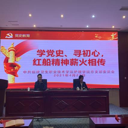 2021年4月27日,護理學(xué)院黨總支在實訓(xùn)樓四樓報告廳舉行特邀組織員聘任儀式暨“學(xué)黨史、尋初心,紅船精神薪火相傳”主題黨日活動。本次活動邀請了中共福建省委黨校黨的建設(shè)教研部鄭濟洲博士來校授課。校黨委副書記李美華、組織統(tǒng)戰(zhàn)部部長吳華、副部長謝宗穎、人事處副處長劉明珠,組織統(tǒng)戰(zhàn)部、人事處、護理學(xué)院黨總支全體教職工黨員、學(xué)生工作部部分輔導(dǎo)員及護理學(xué)院黨總支全體入黨積極分子共200余人參加了此次活動。