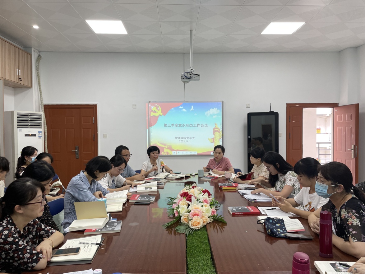 2021年9月1日,護(hù)理學(xué)院在301會(huì)議室召開第三季度意識(shí)形態(tài)工作會(huì)議,會(huì)議由黨總支書記謝濤主持,護(hù)理學(xué)院全體教師參會(huì)。