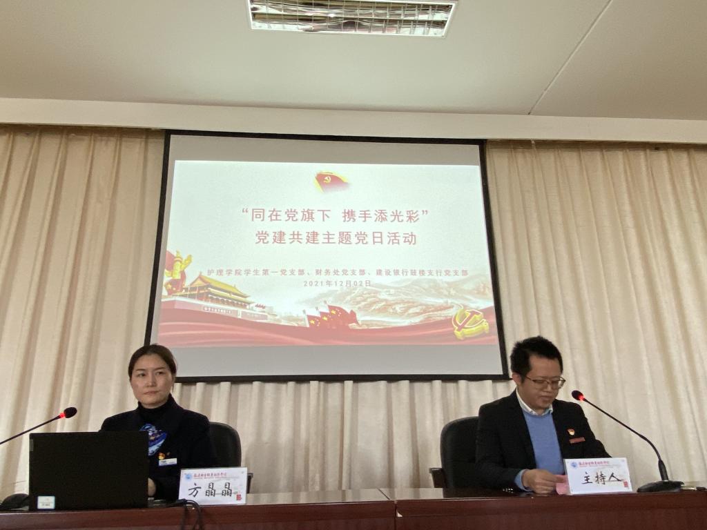 為深入學習貫徹黨的十九屆六中全會精神,堅持以習近平新時代中國特色社會主義思想為指導,落實新時代黨建工作新要求,拓展基層黨建工作平臺,創(chuàng)新黨建共建工作模式,實現(xiàn)“1+1>2”的黨建新效能,2021年12月2日,護理學院學生第一黨支部與財務處黨支部、中國建設銀行福州鼓樓支行黨支部聯(lián)合開展“同在黨旗下 攜手添光彩”黨建共建主題黨日活動。護理學院黨總支書記謝濤、財務處處長陳筱瑜、護理學院學生第一黨支部書記吳鋒、財務處黨支部書記魏鶯、中國建設銀行福州鼓樓支行支部書記、行長陳繼平一行出席,各院系團總支負責人參與活動。