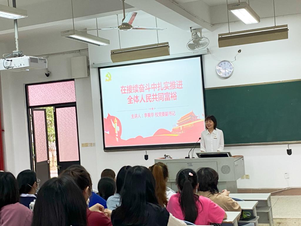 為聯(lián)系班級(jí)20護(hù)理309、310班講授以《在持續(xù)奮斗中扎實(shí)推進(jìn)全體人民共同富裕》為主題的開學(xué)第一課,讓學(xué)生深刻理解共同富裕是社會(huì)主義的本質(zhì)要求,實(shí)現(xiàn)共同富裕需要每一位中華兒女勠力同心、接續(xù)奮斗。激勵(lì)同學(xué)們充分發(fā)揮新時(shí)代奮斗者的主人翁精神,積極進(jìn)取、奮發(fā)有為,做民族復(fù)興的追夢者、圓夢人。