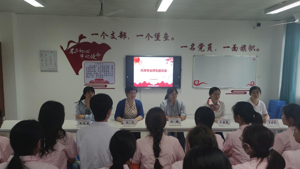 座談會現(xiàn)場氣氛熱烈,幾位教師分別回答了學(xué)生們提出的關(guān)于托育專業(yè)的市場定位、就業(yè)方向、實(shí)習(xí)計(jì)劃、職業(yè)生涯規(guī)劃等問題。龔海蓉指出,托育服務(wù)行業(yè)是國家目前大力扶持的行業(yè),市場規(guī)模龐大,就業(yè)前景廣闊,鼓勵大家在校期間努力學(xué)習(xí),夯實(shí)理論基礎(chǔ),提升技能水平,未來為托育事業(yè)添磚加瓦,成為更強(qiáng)大的自己。最后,吳華書記鼓勵大家堅(jiān)定專業(yè)思想,學(xué)好本領(lǐng),學(xué)院今后也會針對專業(yè)特色開展豐富多彩的活動,增強(qiáng)嬰幼兒托育服務(wù)與管理專業(yè)學(xué)生的實(shí)踐能力。