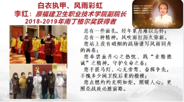 洪霞老師她深情回望百年中國(guó)護(hù)理砥礪前行的發(fā)展史,民主革命時(shí)期:1888年,列強(qiáng)的堅(jiān)船利炮中,我國(guó)首家注冊(cè)護(hù)士學(xué)?!鹆_倫薩·南丁格爾護(hù)士和助產(chǎn)士培訓(xùn)學(xué)校,在福州誕生。新中國(guó)成立初期:建國(guó)伊始,百?gòu)U待興,護(hù)理事業(yè)煥發(fā)勃然生機(jī),進(jìn)入了整頓、規(guī)劃、發(fā)展階段。改革開放時(shí)期:借著改革的東風(fēng),護(hù)理事業(yè)抽枝發(fā)芽,蓬勃生長(zhǎng)。黨和國(guó)家是護(hù)理事業(yè)發(fā)展的指路明燈。新冠肺炎疫情時(shí)期:從李紅書記的先進(jìn)事跡出發(fā),講述了李紅書記帶領(lǐng)福建護(hù)理隊(duì)馳援武漢,在這場(chǎng)沒有硝煙的戰(zhàn)場(chǎng)中踐行南丁格爾精神。接著生動(dòng)地講述了2020~2022年我們身邊的戰(zhàn)“疫”逆行者。