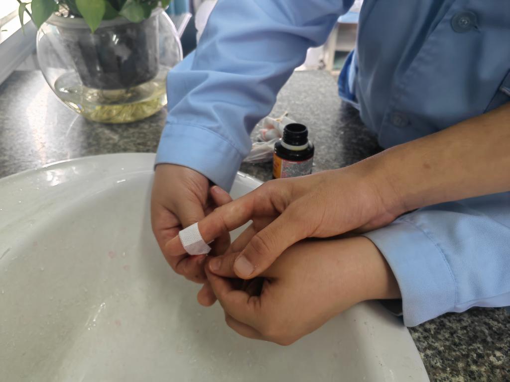 本次演練分為銳器傷應(yīng)急處理演練、應(yīng)急逃生演練(消防、地震)兩個部分進行。第一部分,銳器傷應(yīng)急處理演練。集中講授易引起銳器傷發(fā)生的危險行為,告知學(xué)生發(fā)生銳器傷不要驚慌,聽從指揮,配合老師完成應(yīng)急處理流程,各位置工作人員維持現(xiàn)場秩序,確保實訓(xùn)室無發(fā)生其他安全事件。