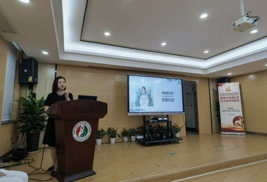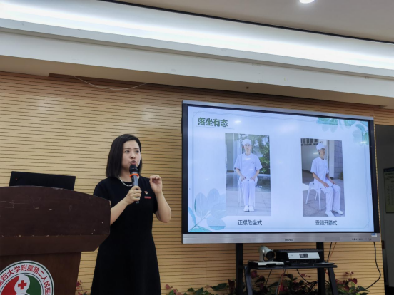 接著,劉菲菲老師就護(hù)士的儀容禮儀、服飾禮儀、舉止禮儀和言談禮儀四各方面進(jìn)行了詳細(xì)闡釋。