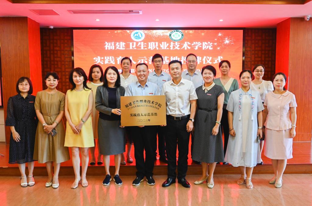 我校黨委書記曾武祈代表學校向福州市第一總醫(yī)院授予“福建衛(wèi)生職業(yè)技術(shù)學院實踐育人示范基地”牌匾。