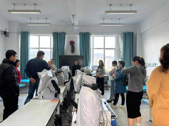 展課。林仁琴老師代表內科護理教研室介紹了如何基于智慧職教平臺開展線上-線下混合式教學。李冬秀老師與廈門市兒童醫(yī)院的張藝老師圍繞“如何創(chuàng)設高效實訓課堂”分別進行《內科護理》和《急危重癥護理》的教學示范,并實地參觀了內科護理實訓室和急危重癥護理實訓室,為后續(xù)課程開展做準備。