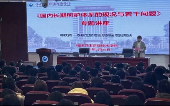 2024年2月28日上午,護理學(xué)院邀請?zhí)┛抵寅槇@養(yǎng)老服務(wù)&康復(fù)醫(yī)院有限公司/主任護師韓秋英教授開展《國內(nèi)長期照護體系的現(xiàn)況與若干問題》專題講座。本次講座由護理學(xué)院院長肖春秀主持,護理學(xué)院教師及老年保健與管理專業(yè)學(xué)生聆聽了此次講座。