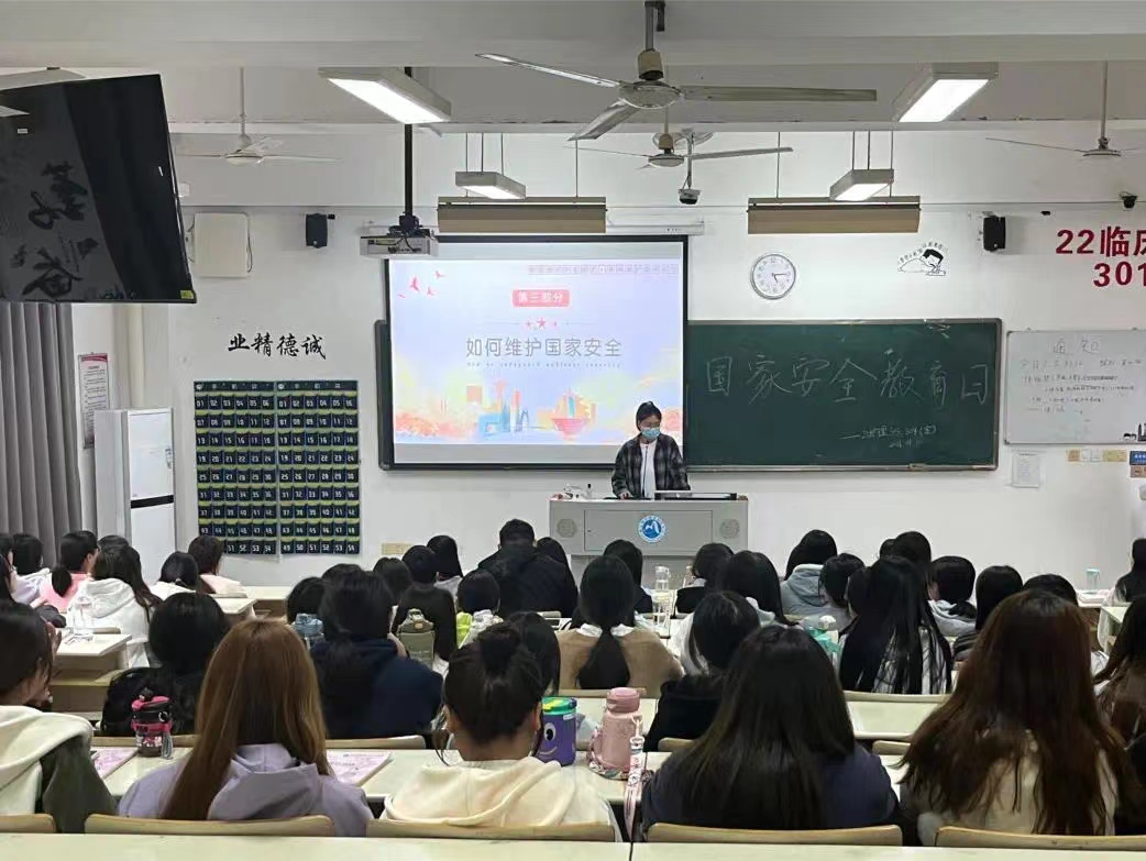 讓同學(xué)們明確今年“全民國家安全教育日”的主題:堅(jiān)持總體國家安全觀,著力防范化解重大風(fēng)險(xiǎn)。向同學(xué)們講述了國家安全法中,與我們生活密切相關(guān)的問題,如糧食安全、文化安全、信息安全、打擊邪教、防恐、社會(huì)安全、生態(tài)安全等等。安全無小事,責(zé)任重于泰山。在這個(gè)特殊的日子里與護(hù)理學(xué)院攜手守護(hù)國家安全!