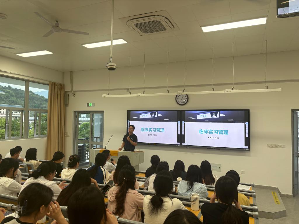 為加強(qiáng)學(xué)生實(shí)習(xí)業(yè)務(wù)指導(dǎo)和日常教育管理工作,幫助學(xué)生順利完成實(shí)習(xí)任務(wù),5月10日下午,護(hù)理學(xué)院在學(xué)院第五階梯教室召開2022級(jí)學(xué)生實(shí)習(xí)動(dòng)員部署會(huì)。護(hù)理學(xué)院黨總支副書記林來元、副院長(zhǎng)林浩、2022級(jí)輔導(dǎo)員、各實(shí)習(xí)單位隊(duì)長(zhǎng)及副隊(duì)長(zhǎng)、省外自主實(shí)習(xí)學(xué)生共150余人參加了此次會(huì)議。