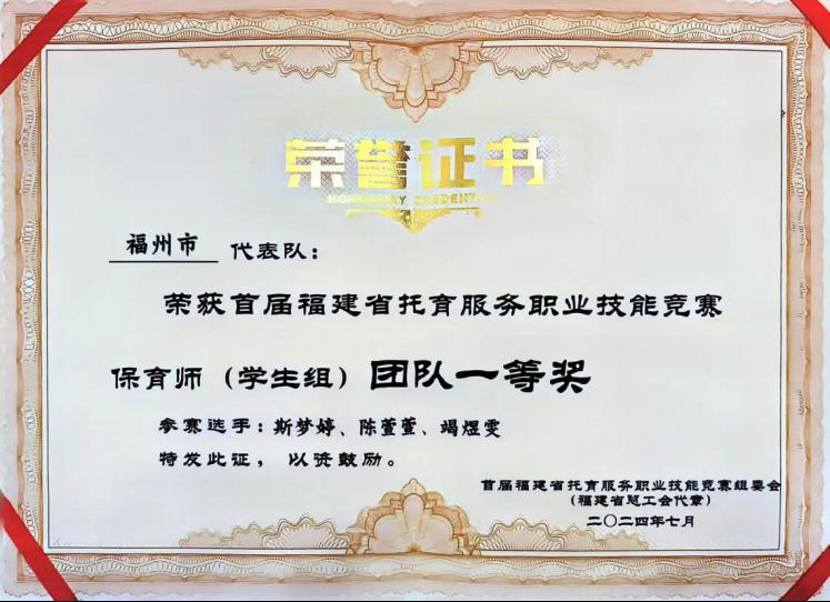 三位選手在此前由福州市總工會(huì)主辦的“福州市職工素質(zhì)提升工程——托育服務(wù)職業(yè)技能競(jìng)賽選拔賽”中脫穎而出,以團(tuán)體第一名的成績(jī)代表福州市參加此次省賽。
