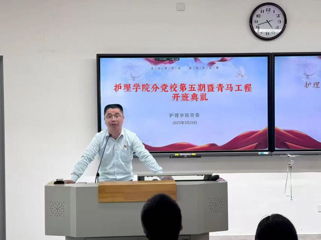 為深入學(xué)習(xí)貫徹習(xí)近平新時代中國特色社會主義思想,切實(shí)加強(qiáng)入黨積極分子及青馬學(xué)員的教育培養(yǎng),2025年3月27日,護(hù)理學(xué)院分黨校第五期入黨積極分子培訓(xùn)班與本期“青年馬克思主義者培養(yǎng)工程”(青馬班)開班典禮在護(hù)理學(xué)院第五階梯教室隆重合并舉行。學(xué)院黨委領(lǐng)導(dǎo)班子、各黨支部書記、團(tuán)委指導(dǎo)老師與全體學(xué)員共同出席了開班典禮。