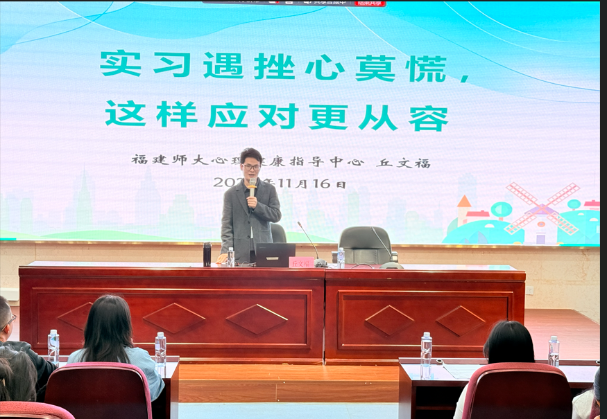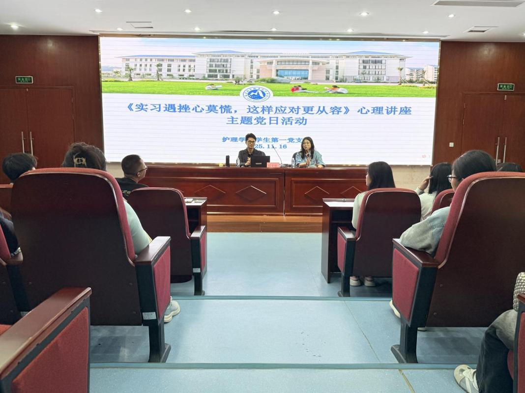 11月16日晚,護(hù)理學(xué)院學(xué)生第一黨支部在篤行樓四樓報(bào)告廳開(kāi)展“實(shí)習(xí)遇挫心莫慌,這樣應(yīng)對(duì)更從容”專(zhuān)題講座黨日活動(dòng)?;顒?dòng)特邀福建師范大學(xué)心理健康指導(dǎo)中心專(zhuān)職教師、國(guó)家二級(jí)心理咨詢(xún)師丘文福主講,護(hù)理學(xué)院師生通過(guò)線上線下結(jié)合的方式參與,旨在幫助學(xué)生緩解心理壓力、提升心理調(diào)適能力。
